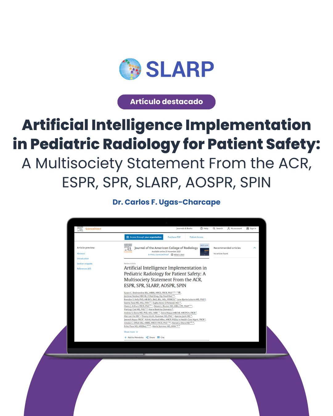 Artículo destacado: Artificial Intelligence Implementation in Pediatric Radiology for Patient Safety: A Multisociety Statement From the ACR, ESPR, SPR, SLARP, AOSPR, SPIN